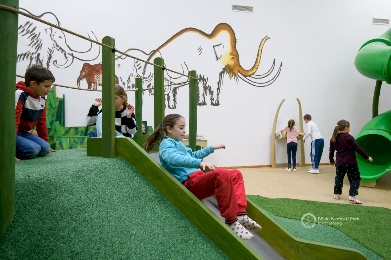 All this is not only graphically presented, but also through interactive interfaces and 2-/3D films. The topics are echoed in the visitor center's environmental education modules, which are aimed at elementary and high school age groups in the area. An employment room is available for them on these occasions. The Stone-age Karst Adventure indoor playhouse is designed for 4-14 years old. Children can descend into the "Doline pit", have an adventure in a multi-level tunnel system, while observing the wildlife of the Bükk Mountains. During their discoveries, they can meet the saber-toothed tiger, but they can also try archeology. The Bikkmakk playground is located in the square in front of the building, and the Pókfonal (Spider yarn) playground awaits the little ones in the park, which can be visited by purchasing a ticket.