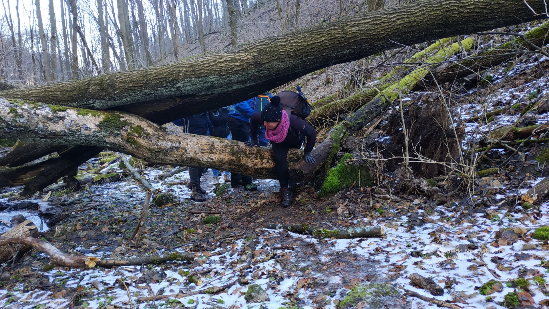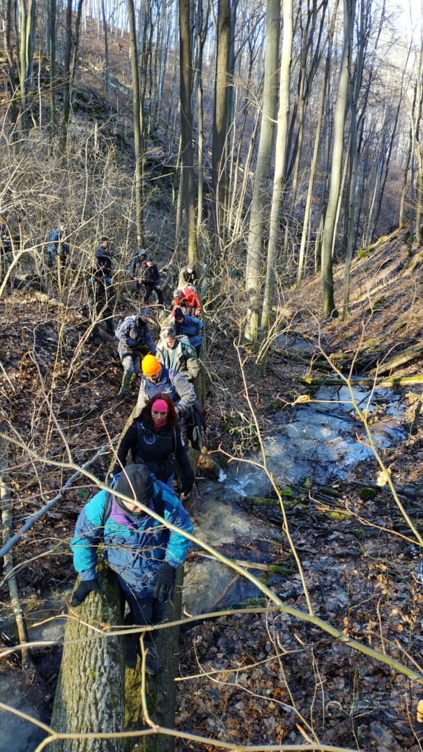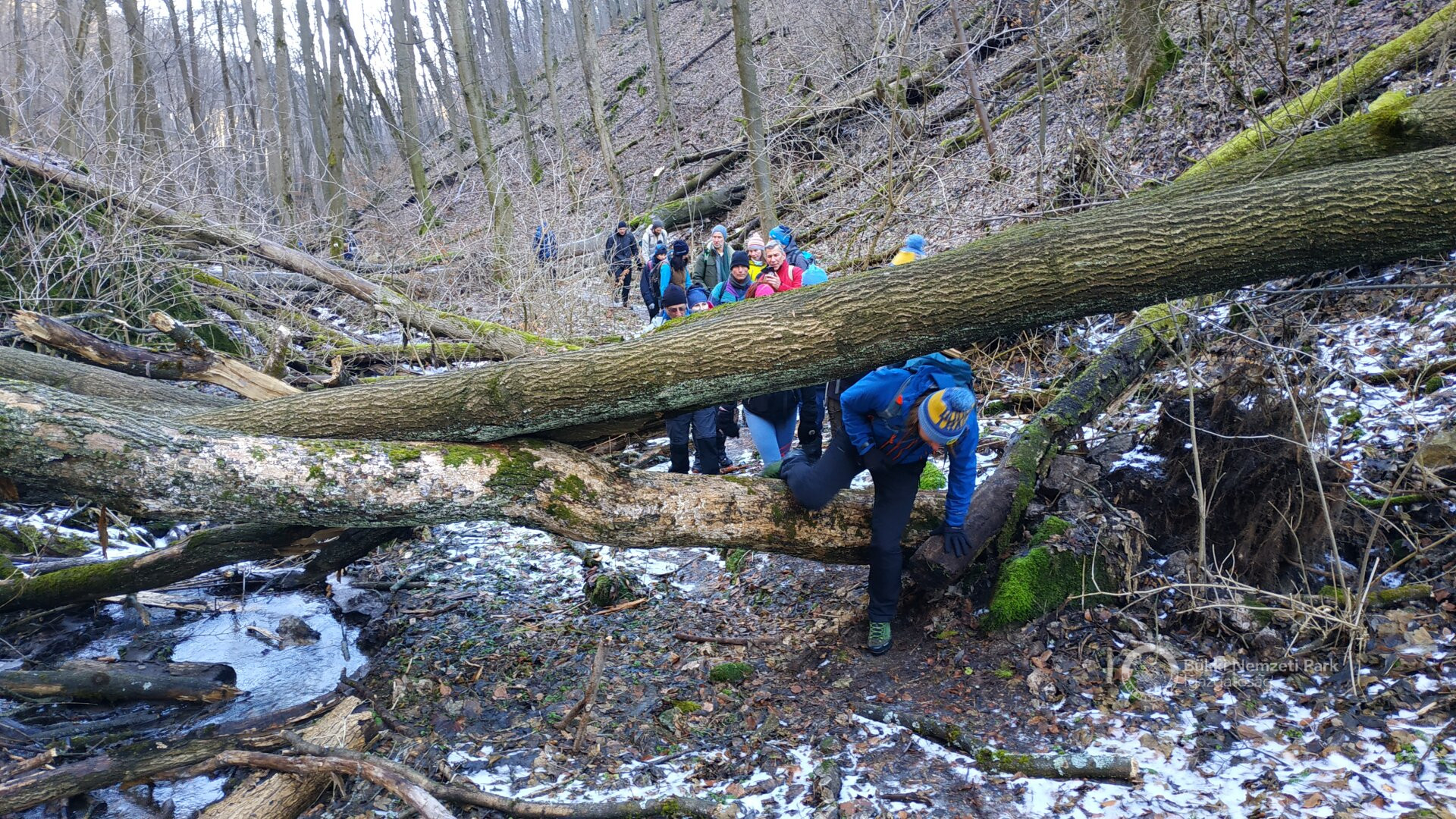Az idei túrán Mályinkából indulva egy sokak számára ismeretlen területet jártunk be a Kis-fennsíkon, hogy a decemberben megnyitott miskolci Szeleta Parkba érkezzünk meg estére. A napsütéses reggelen a fokozottan védett Csondró-völgy alján csordogáló patak nedves körülményeket teremtett számunkra, számtalan kis vízeséssel és kidőlt fák alkotta természetes akadálypályával. Remek hangulatban kapasztodtunk fel az Odvas-kőre, felkerestük a Tardona-patak természetes állapotban megmaradt vízfőjét és a bővizű Mária-forrást, majd a szentléleki turistaháznál frissítettük fel magunkat meleg italokkal és némi harapnivalóval.