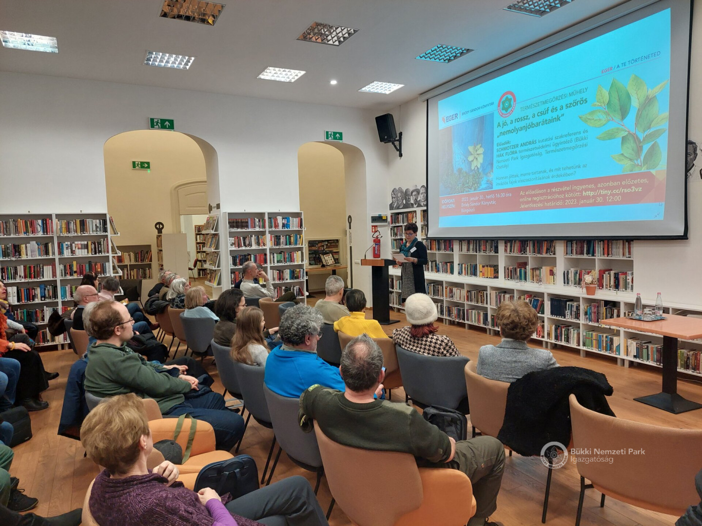 Örömünkre szolgált, hogy sok érdeklődő vett részt az eseményen, amelyen a környezetünkben is megfigyelhető inváziós növényfajokat, valamint a hazánkban már megtelepedett emlősfajokat mutattuk be. A programsorozat az idei év első felében havi egy alkalommal májusig kerül megrendezésre, s előadók az Bükki Nemzeti Park Igazgatóság munkatársai közül, a Természetmegőrzési Osztályról érkeznek majd a továbbiakban is. Februárban Sulyok József, az Élővilágvédelmi Csoport csoportvezetője a Bükk orchideáiról és az azokat érintő természetvédelmi problémákról tart majd előadást. A pontos időpontot jövő héten tesszük közzé.