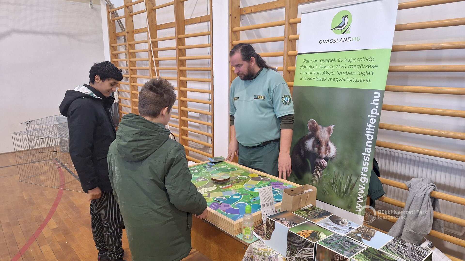 A szombati napon, a Grassland IP Life keretében, a pannon gyepek és élőviláguk fontosságára való felhívás volt a fő célunk. Ennek kivitelezésében a szóbeli információ átadás mellett a gyepekhez kötődő élőlényeket ábrázoló memóriajáték és kirakó, valamint a tavalyi Év Emlősét, a magyar szöcskeegeret a középpontba helyező társasjátékunk voltak segítségünkre.