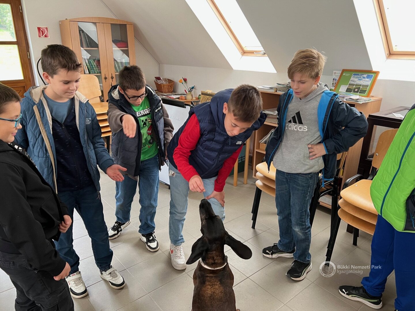 Szerdán a Hunyadi János Általános Iskola diákjait fogadtuk szintén Felsőtárkányban, egy több állomásos természetismereti modulra. Három kollégánk, három helyszínen állt rendelkezésre érdekes témákkal. Első állomáson a fiatalok a Borsodi-Mezőség csíkos hátú kincsével és egyben az Év emlősével, a magyar szöcskeegérrel ismerkedhettek meg. Játékos feladaton keresztül kaptak információt eme ritka kisemlős életviteléről. A második állomáson a felelős állattartás kapott főszerepet, szintén Csipke kutya asszisztálásával. A gyerekek megismerkedhettek a négylábúak viselkedésével, igényeivel és szóba került a többi állat otthoni tartásának felelőssége is. A harmadik állomáson a résztvevők betekinthettek a természetközeli erdők rejtett világába egy interaktív tábla segítségével. Saját erdeik megalkotásával biztosíthatták az állatok megfelelő élőhelyeit.