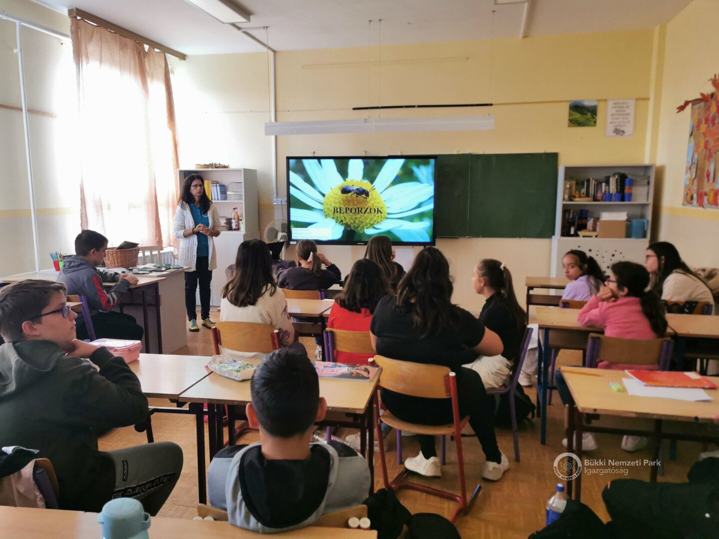 Ezen a napon a felsőtárkányi óvoda is ellátogatott hozzánk a Bábakalács Természetiskolába, ahol Állati nyomozás című modulunknak köszönhetően tekinthettek be az élővilág rejtelmeibe. Ezután két csoportban erdei sétát tettek, ahol a gyerekek izgalommal és örömmel vizsgálták a környezetüket állati nyomok után kutatva. Jánoshidára is ellátogattunk, a Petőfi Sándor Általános Iskola ötödikes és hatodikos osztályában a beporzók szerepéről és védelméről tartottunk vetített képes előadást és interaktív foglalkozást.