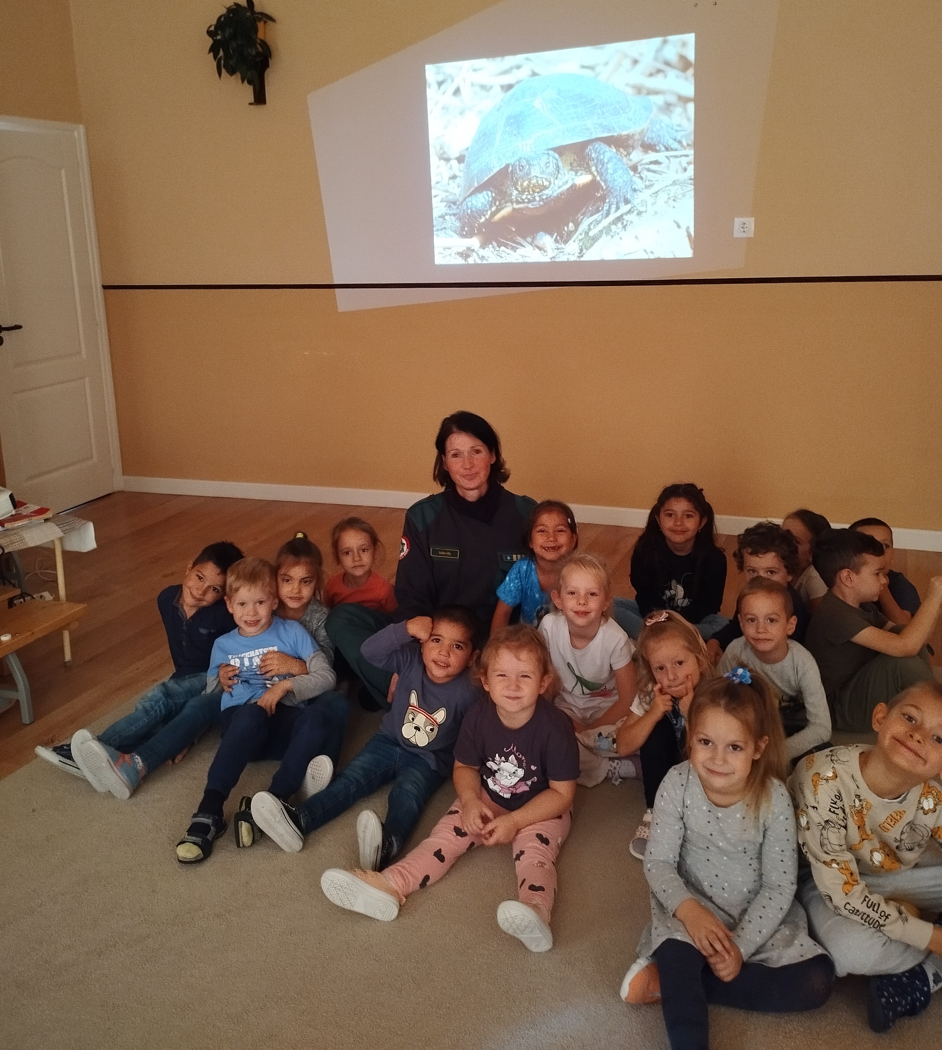 Az Állatok Világnapjához kapcsolódóan Igazgatóságunk több tájegysége is készült programokkal, így például Csákiné Dobos Laura a Vidra Verda guruló természetbúvárral több nógrádi oktatási intézménynél is járt, de a Tarna-Lázbérci Csoport természetvédelmi őre, Juhász Lilla is tartott foglalkozást az Ivádi Napköziotthonos Óvodában. A foglalkozás keretében az ovisok hazánkban is élő állatfajokat láthattak, feladatuk pedig az volt, hogy utánozzák őket. Az éti csiga utánzása különösen izgalmas kihívást és nagy örömet szerzett számukra. Az ovisok egész napja az állatokról szólt, és mint kiderült, mindannyian nagyon szeretik is azokat. Fontosnak tartjuk, hogy a természetismereti szemléletformálás már óvodás korban elkezdődjön, és lehetőséget teremtsünk az egészen kicsiknek is arra, hogy közvetlenül kapcsolódjanak a természeti értékeinkhez.