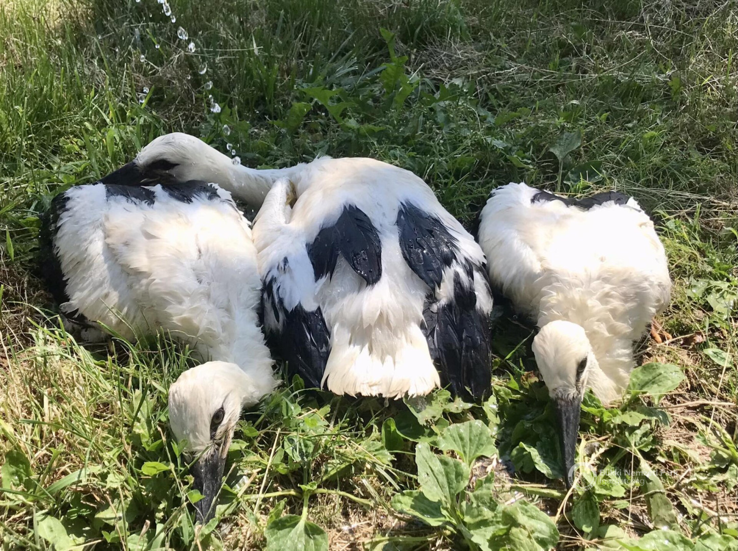 Fehér gólya fiókák egy viharban levert fészekből (Fotó: Hák Flóra)