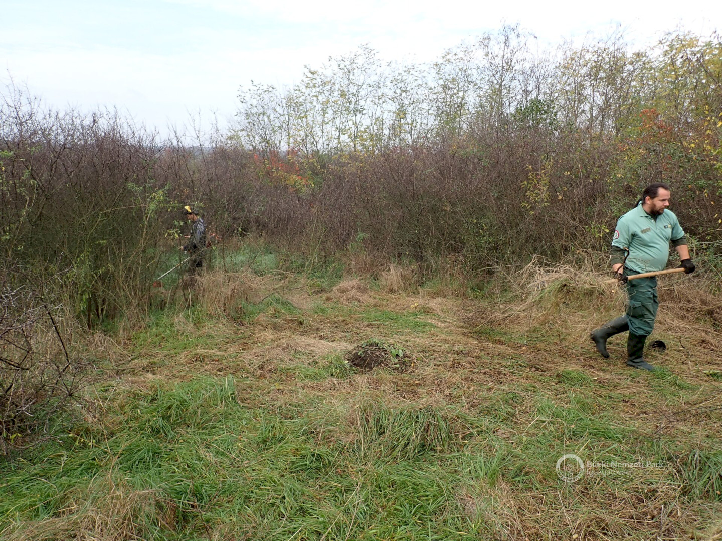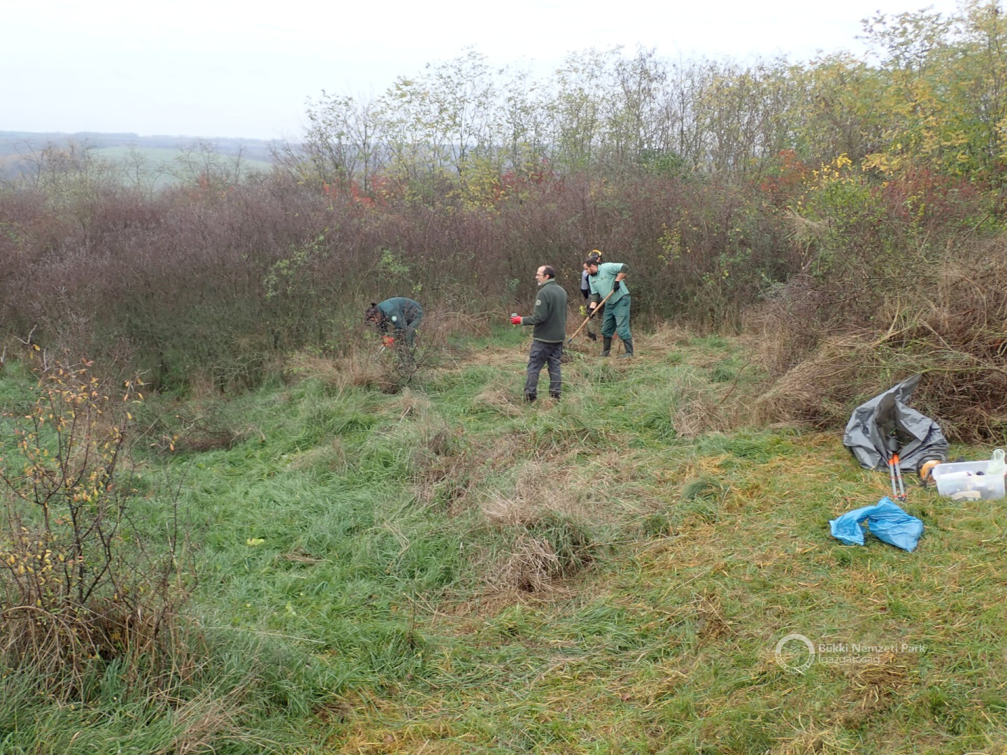 A helyi védettség kimondása azonban önmagában nem biztosítja a faj fennmaradását, így az ismételten becserjésedő „zug” kezelésére volt szükség. Emiatt igazgatóságunk munkatársai 2022 novemberében – a település önkormányzatával egyeztetve – a becserjésedett részeken mechanikus cserjeirtást végeztek, melynek keretében benzines fűkaszával és göllerollókkal vágták vissza, a felverődő kökény (Prunus spinosa), ördögcérna (Lycium barbarum), fehér akác (Robinia pseudoacacia) és vadrózsa (Rosa canina) cserjéket. Az újra megnyitott részeken a sztyepplepke tápnövényéül szolgáló macskahere-foltok megerősödését várjuk. Így reméljük, hogy munkánkkal hozzájárulhatunk a lepkefaj állományának védelméhez, fennmaradásához. A cserjés vegetáció szegélyben történő visszahagyásával továbbra is biztosítjuk a cserjésekhez kötődő gazdag élővilág fennmaradását (pl. énekesmadarak, viráglátogató rovarok stb.) is.