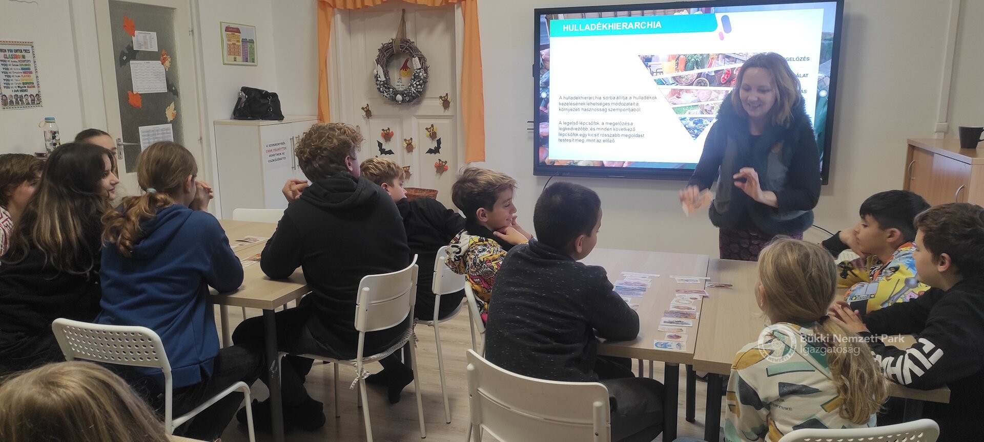 A gyerekek aktívan, lelkesen vettek részt a rendhagyó tanórákon. A csoportoknak a megelőzésre és az újrahasznosításra is kellett megoldásokat találni az óra során.