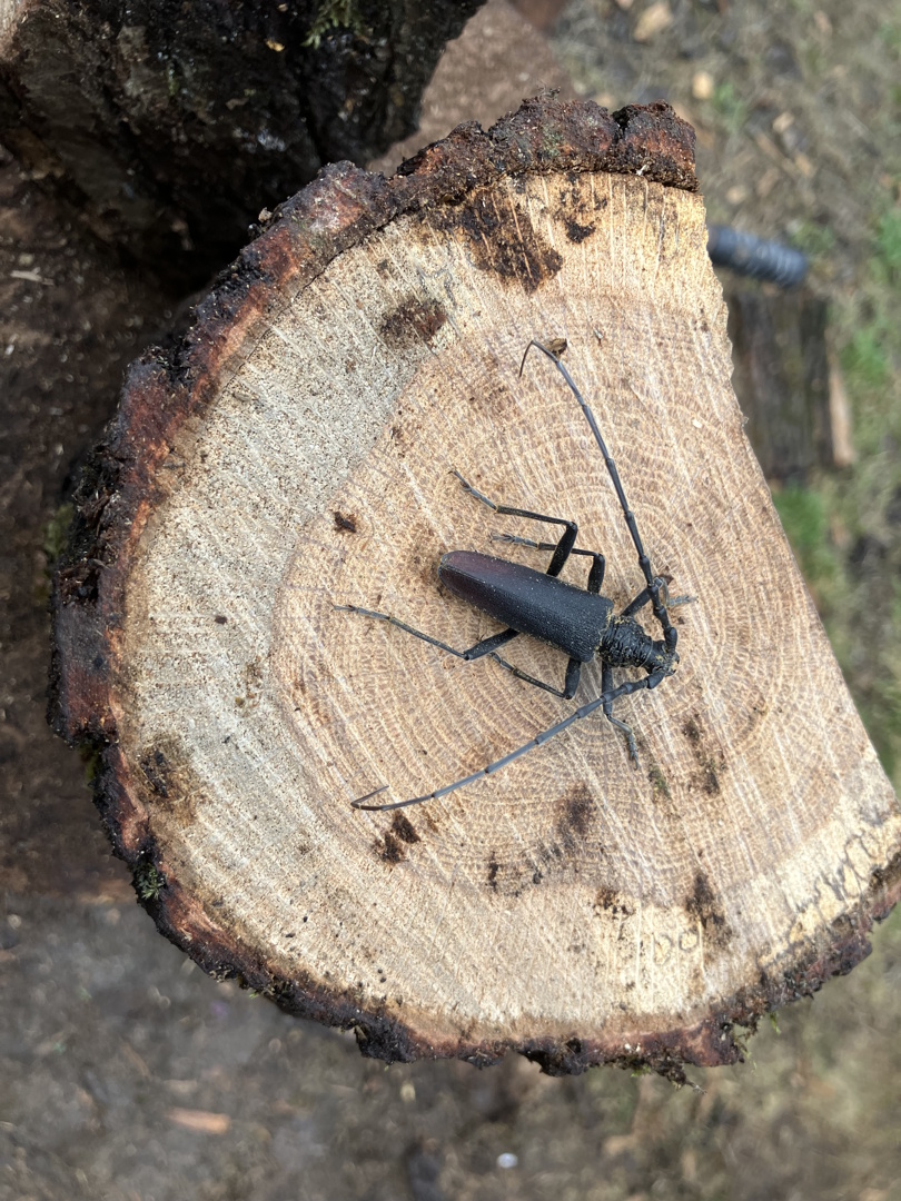 A cincérek az egyik kedvenc rovarcsoportom, amelyből már több faj - köztük védett és inváziós is - előkerült az udvaromban több évre elrakott száradó sarangokból. Február elsejének reggelét is hasogatással kezdtem, amikor az egyik kocsánytalan tölgy tuskóban egy feltáruló járatra lettem figyelmes, amiből egy fej és egy tor kandikált ki. Mikor óvatosan kihúztam a test többi részét, gyermekeim nagy örömére kiderült, hogy egy nagy hőscincért találtam.