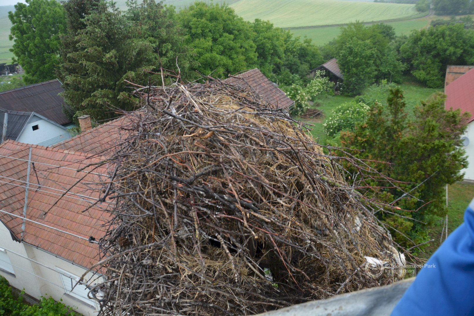 Négy nappal később már egészen takaros lett a tönkrement fészek, nem hiába: a gólyák ehhez jobban értenek nálunk. A két kis gólya szépen cseperedik azóta is, mert fiókák felnevelésében is jobbak az embernél, csak néha elkél egy kis segítség a hálózaton. De csak annyi amennyi éppen szükséges, aztán folytatják ők tovább a munkát.