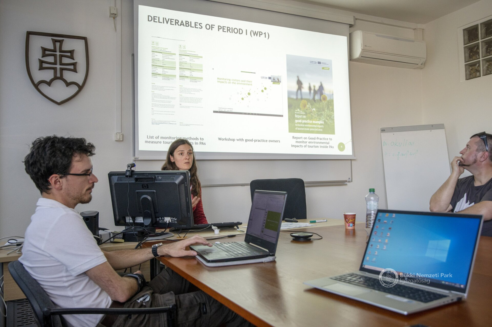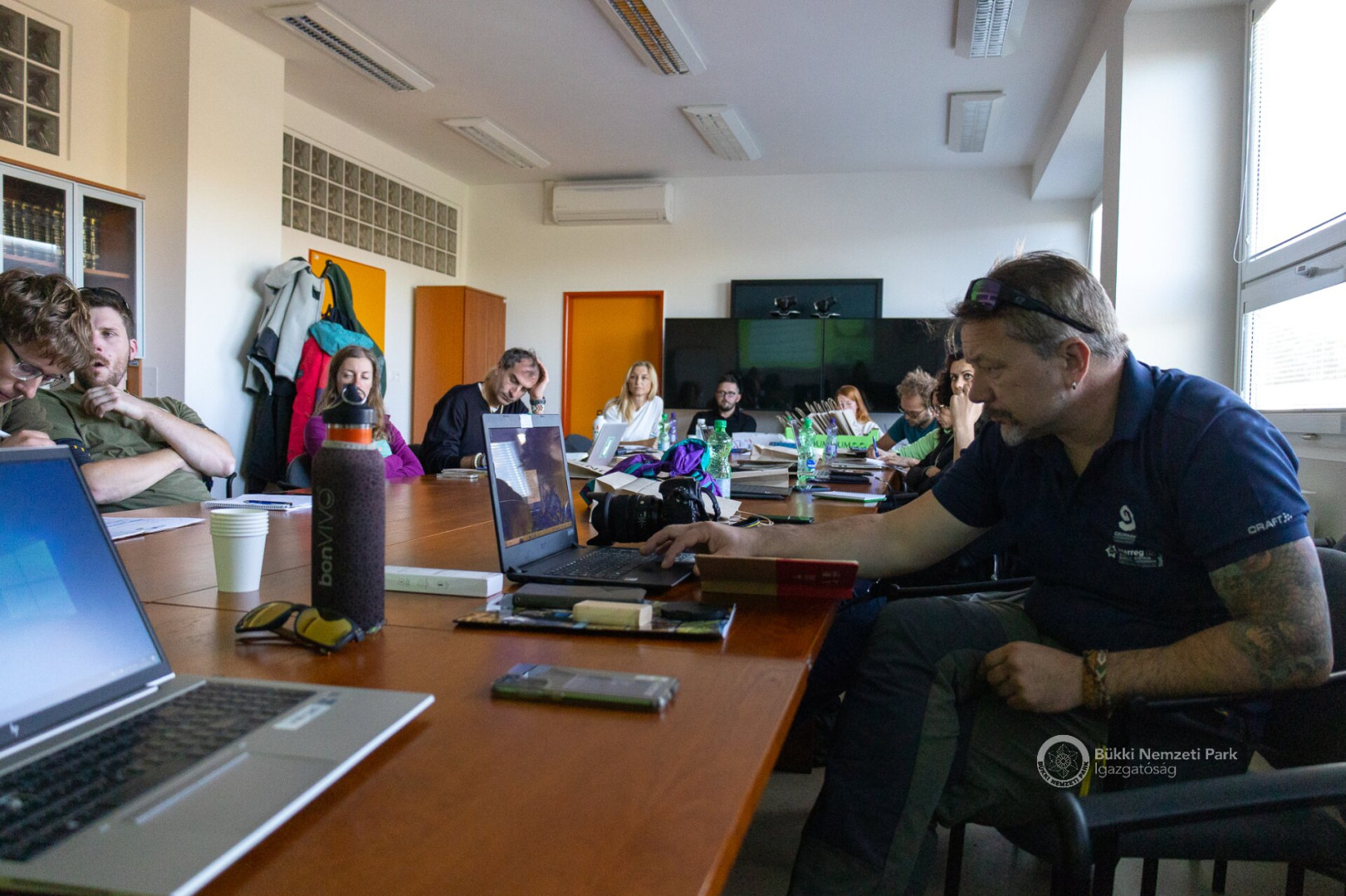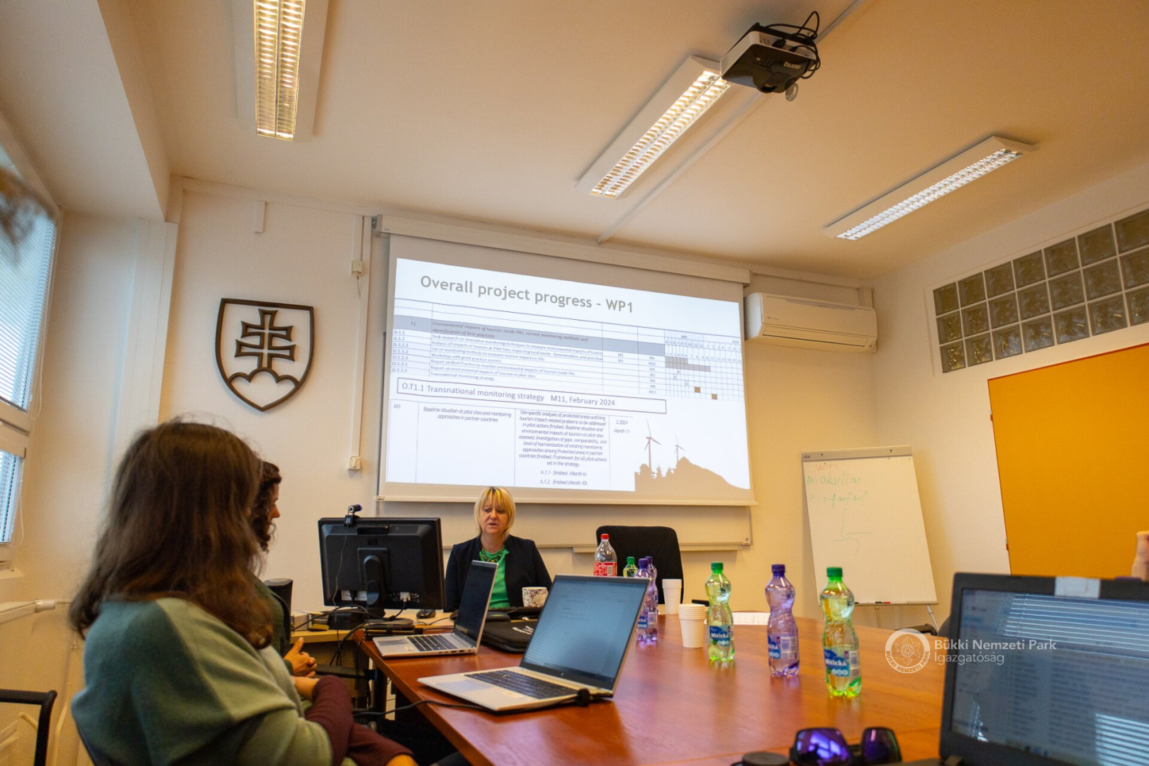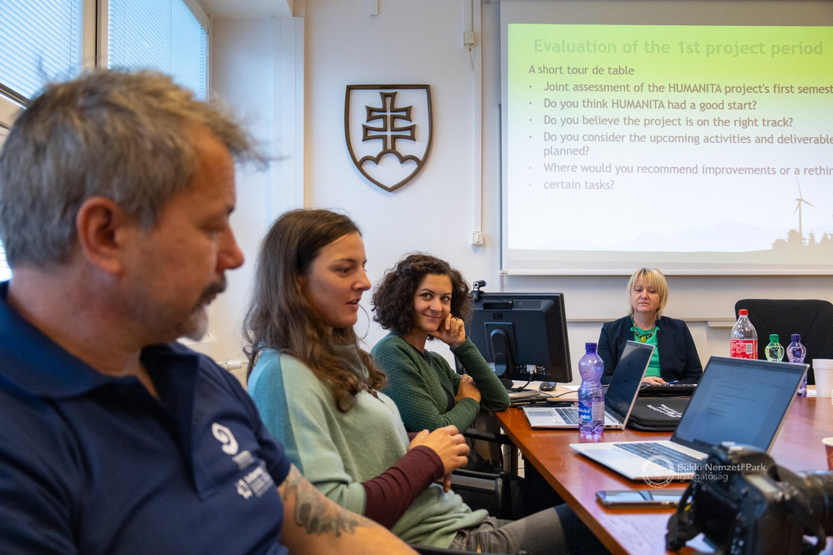 A terepi bejárás után a délutánt a Zsolnai Tudományegyetemen töltöttük. A megbeszélés szakmai része a projekt féléves kiértékelésével kezdődött a főpartner tolmácsolásában, majd a projekt három feladatcsoportjának koordinátorai adták elő az előző félévben elért eredményeket és a következő periódusban elvégzendő feladatokat. A délutáni megbeszélés zárásaként a HUMANITA öt beavatkozási területe (Kis-Fátra Nemzeti Park - SK; Karawanken-Karavanke UNESCO Globális Geopark - SLO/AU; Kamejak Természetvédelmi Terület - HR; Toszkán-Emilián Appenin Nemzeti Park - IT; Bükki Nemzeti Park Igazgatóság - HU) prezentálta a féléves eredményeket, valamint a projektben tervezett monitoring tevékenységeket. Október 19-én a partneri találkozó a kommunikációs tevékenységek átbeszélésével folytatódott, majd az irányító bizottság ülésével zárult.