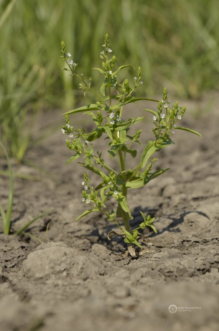 A henye pimpó (Potentilla supina) a gyakoribb fajok közé tartozik, lecsepült hajtásaiból rikítanak sárga virágai. Sokaknak nem szembetűnő, nem figyelemfelkeltő növény a henye káka (Schoenoplectus supinus), ám az ő jelenléte már arra utal, érdemes lehajolni és az iszapfelszínen nyitott szemmel keresgélni. Ez esetben rálelhetünk a védett magyar látonya (Elatine hungarica) aprócska telepeire. Ez az aprócska növényfaj a Tisza ártérén kedvező évben nagyméretű, akár fél méter átmérőjű telepeket hozhat létre. Jelen esetben a deciméteres foltoknak is rendkívül örültünk, bár a többségük csak pár centiméteres volt. Másik védett látonyafajunk, a pocsolyalátonya (Elatine alsinastrum) is előkerült. Ez a faj rokonaihoz képest egyébként termetes méretű lehet, akár 10-30 cm magasra is megnőhet, megtalálásakor még csak aprócska hajtásait láthattuk. Nem így volt a heverő iszapfűvel (Lindernia procumbens). A leszáradó felszíneken megjelenő aprócska növényfaj egészen nagy mennyiségben csírázhat és virágozhat, a mezőgazdasági parcella soraiban kisebb mezőket alkotó foltjai a laikusokkal is megszerettetik az iszapnövényeket.