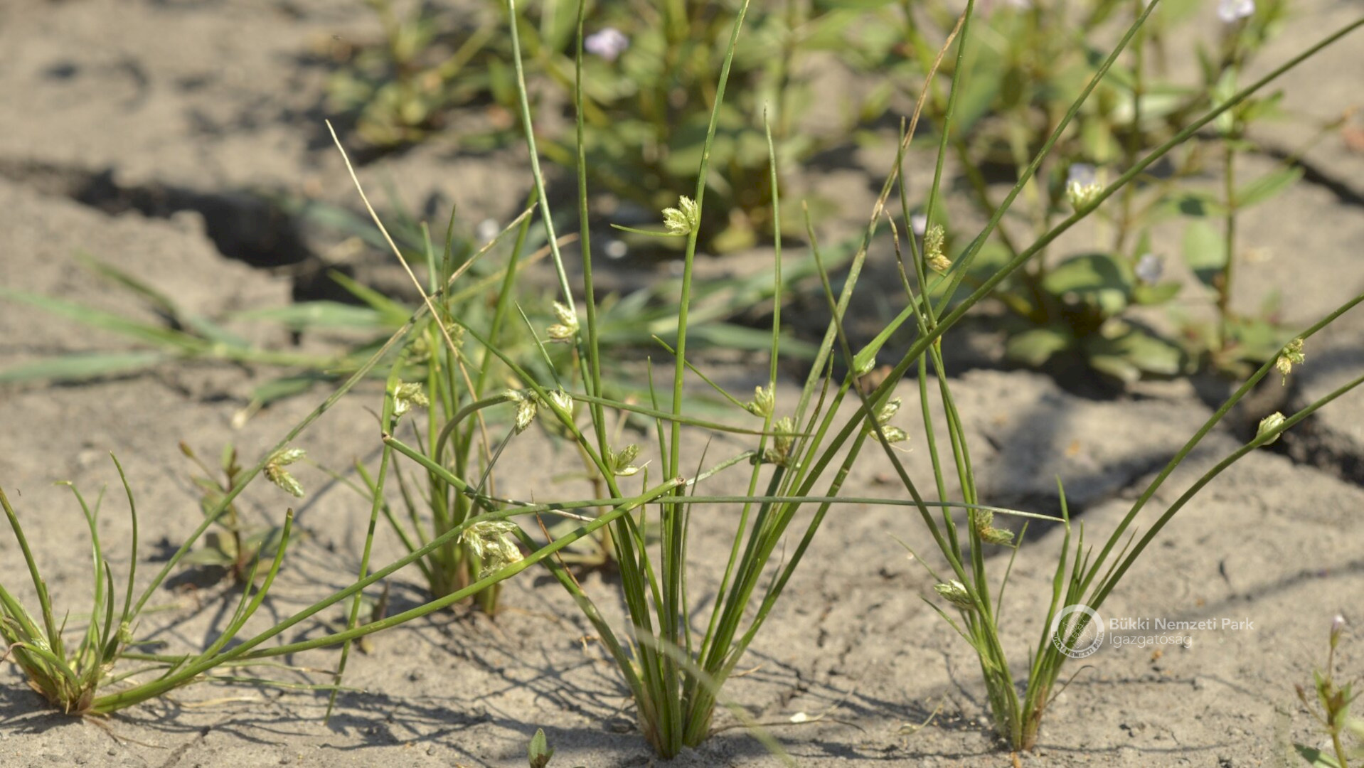 Henye káka (Schoenoplectus supinus) kiszáradt talajfelszínen