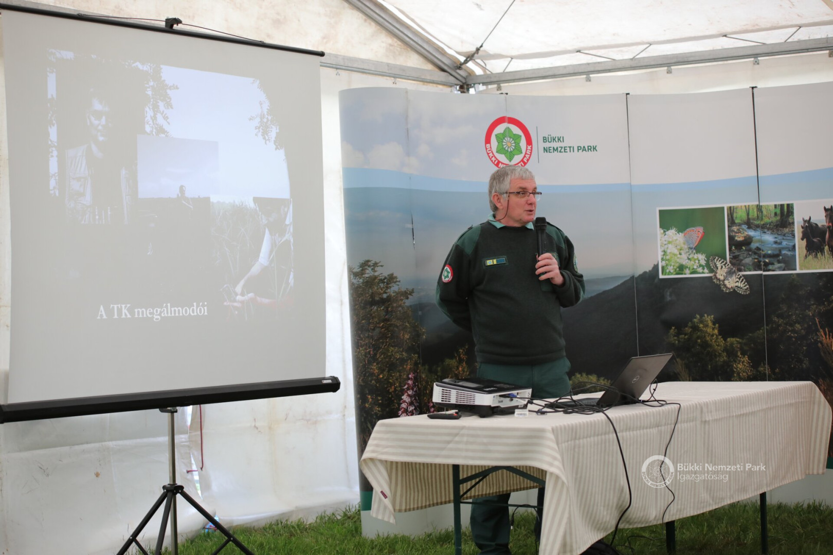 A rendezvény helyszínét az idén fennállásának 30. évét ünneplő Hevesi Füves Puszták Tájvédelmi Körzet adta. A körzet történetéről Tóth László, a Dél-Hevesi Tájegység tájegységvezetője tartott előadást. Felidézte: a védetté nyilvánítás célja a Hevesi Sík eredeti állapotát reprezentáló pusztai élőhelyek, a rajtuk élő túzok, valamint fokozottan védett ragadozó madarak megóvása volt. A terület az évek folyamán többször is bővült, jelenlegi területe 16114 hektár. (A körzet történetéről hamarosan cikket jelentetünk meg honlapunkon.)