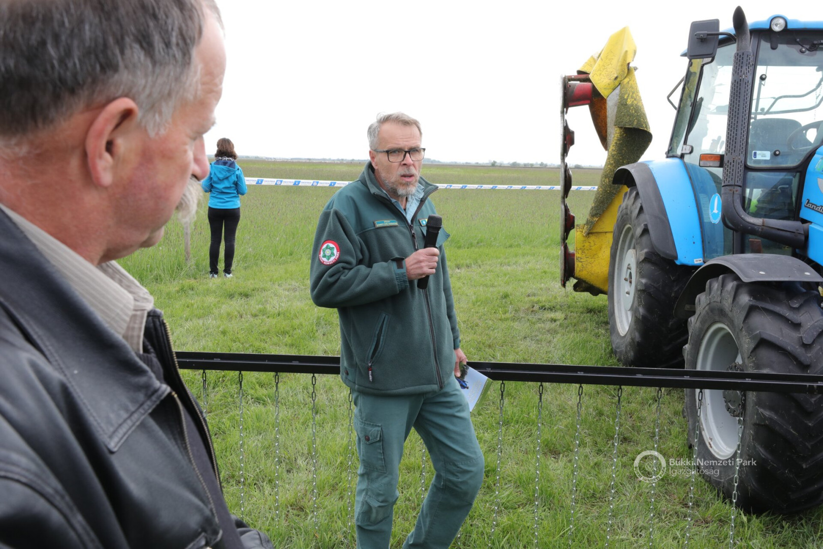 A nap folyamán sor került egy kaszálás bemutatóra is, amely során egy traktorra szerelhető vadriasztó lánc használatát demonstrálták a Magyar Madártani és Természetvédelmi Egyesület és a BNPI szakemberei a jelenlévőknek. Ez a szerkezet arra szolgál, hogy felriassza a gyepekben megbúvó madarakat, ízeltlábúakat, kétéltűeket és emlősöket, hogy azok időben el tudjanak menekülni, még mielőtt a gép kárt tenne bennük. A túzok határon átnyúló védelme Közép-Európában c. LIFE projekt keretében a madárbarát kaszálási módok fontos szerepet kapnak, hiszen a gyepek és a pillangós kultúrák május-júniusi kaszálásai jelentősen befolyásolják a földön fészkelő madárfajok – így pl. a fokozottan védett túzok – fészkelési sikerét. Ezen fajok megóvása, a költésük zavartalanságának biztosítása csak a gazdálkodókkal együttműködve lehetséges. Fontos kiemelni, hogy a kaszálási károk mérséklése, megelőzése nemcsak természetvédelmi, hanem vadgazdálkodási szempontból is fontos, hisz az elpusztult állatok között éppúgy akadnak védett és fokozottan védett fajok, mint apróvadak: mezei nyulak, fácánok, őzek.