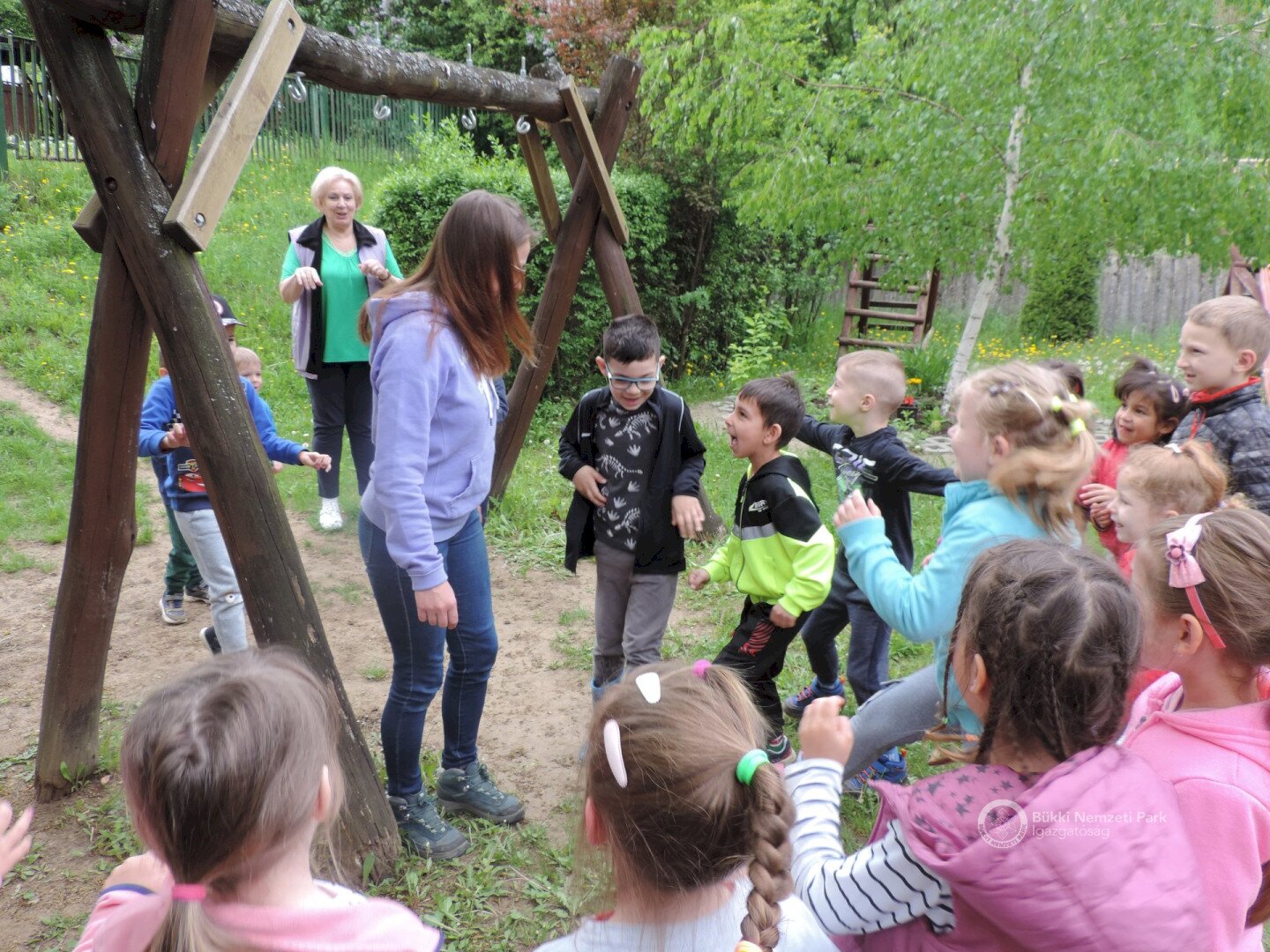 A Vidra Verdával is nagyon sok helyre elrobogtunk megünnepelni a Madarak és Fák napját, legyen az a Nógrádi Tájegységen belül, vagy azon kívül. Ezt a zöld jeles napot együtt tartottuk meg gyerekekkel Egerben, Salgótarjánban, Baglyaskő-várnál, Mátraszentimrén és Balassagyarmaton. Eljátszottuk a fák növekedését és átbeszéltük jelenlétük fontosságát. Kipróbáltuk, hogy mennyivel nagyobb öröm átölelni egy fát, mint leszaggatni a leveleit, vagy letördelni az ágait. Az odúban költő madarak ismertetésétől eljutottunk a fehér és fekete gólyák különbségeinek felfedezéséig, majd a madarak táplálékláncáról esett szó. Természetesen most sem maradhatott szárazon egy vízi háló sem.