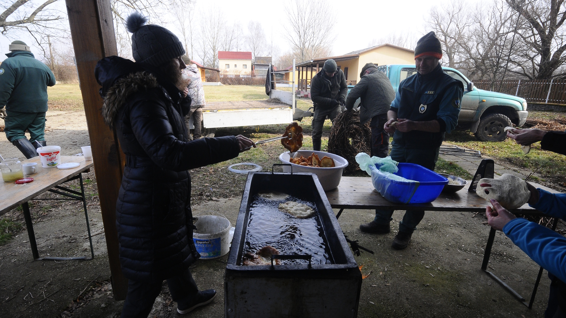 A nap folyamán a csípős hideget enyhítette a forró tea és a frissen sült lángos.
