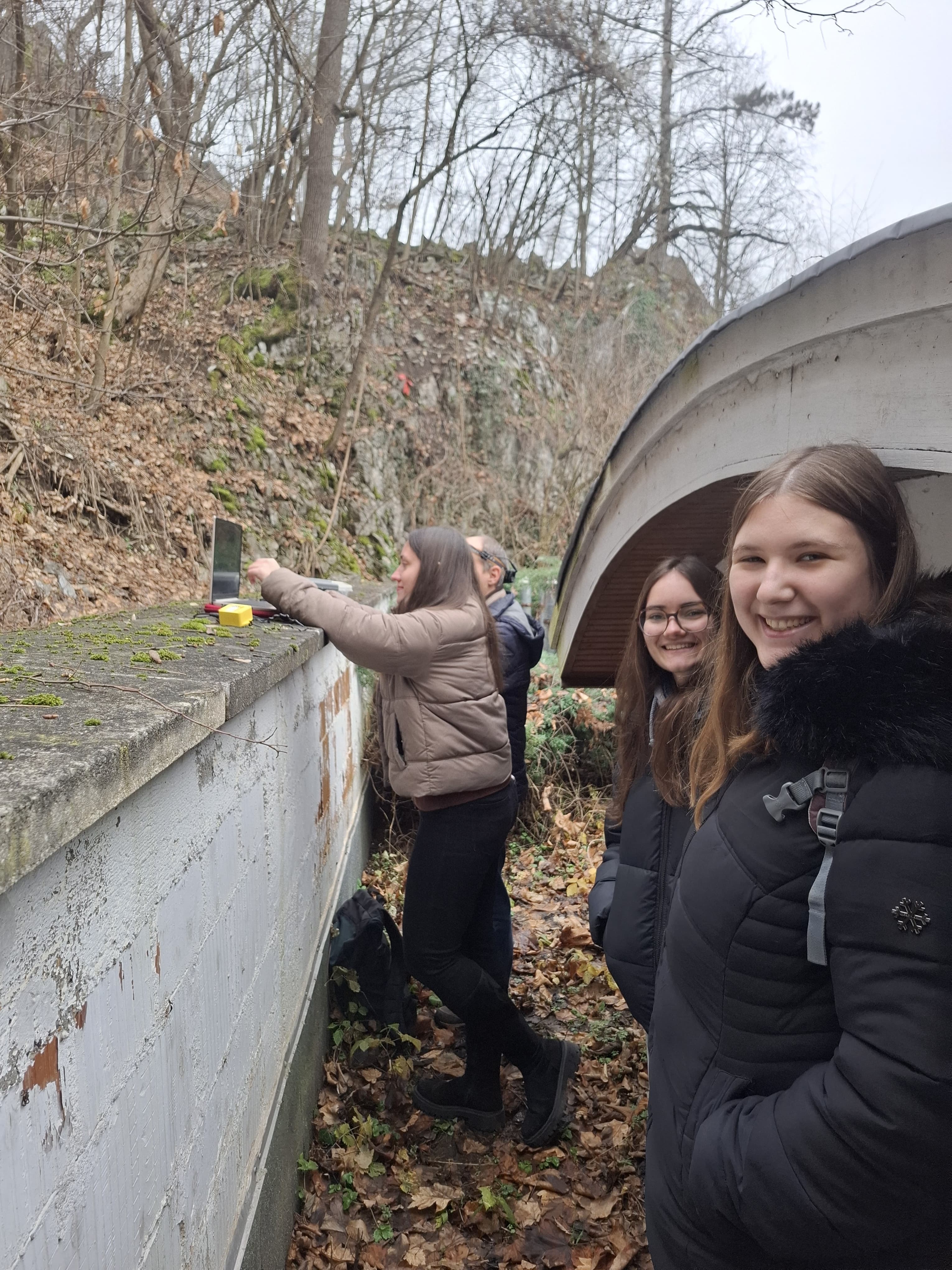 Außerdem sollten wir die Infotafeln überprüfen und den Standort melden. Nach dem wir das erste Mal abbrechen mussten, ging es beim zweiten Versuch durch den wunderschönen Ort Lillafüred los, an einem Wasserfall und an dem See von Lillafüred vorbei und dann mussten wir ein kleines Stück an der Straße gehen, bis wir den Wanderweg erreichten. Wir genossen den tollen Ausblick. Alles war neu für uns und so aufregend. Schließlich erreichten wir die Szeleta Höhle. In der Höhle hörten wir plötzlich Geräusche. Es waren Fledermäuse! Alles filmten wir mit. Als wir unser Videomaterial hatten und alle Infotafeln fotografiert hatten (wir hofften, dass wir alle gefunden hatten), ging es wieder zurück.