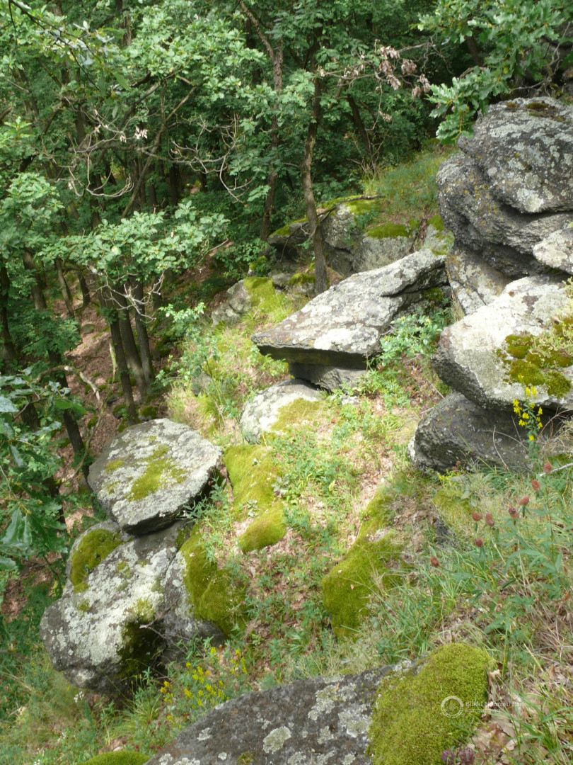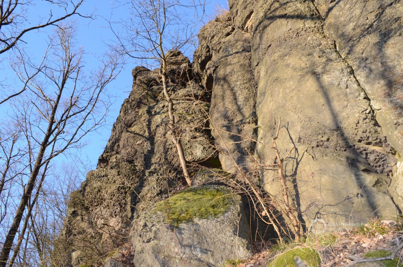 A Bénai-sziklákon a bazalt oszlopos és pados elválása, valamint a lejtőmozgás folyamata tárul elénk. A gerinctől elváló bazaltoszlopok lassan lecsuszamlanak a meredek lejtőn és helyenként „kővárost“ kezdenek kialakítani. A lepusztulás számos érdekes kisformákat is létrehoz: mint a „sárkányfog“ alakjában kiálló bazaltpadokat. A napsugarak által felhevített bazaltban ún. kukoricacsöves elválás lép fel, amely a felszínen apró gömböcskék formájában jelenik meg. Részben ennek köszönheti létrejöttét az egyik elváló bazaltoszlop ívében található kis bazaltbarlang is. A Bénai-sziklák az egykori lávaár pereme lepusztulásának iskolapéldája. A Bénai-sziklák rendkívüli geológiai és geomorfológiai értékük miatt természeti emlékként védettek. A bénai bazalt szürke, sötétszürke, gyakori olivin, augit, nefelin és amfibol elegyrészekkel. A múltban Jugovics L. (1941) aragonit kristályok előfordulását is említ innen.