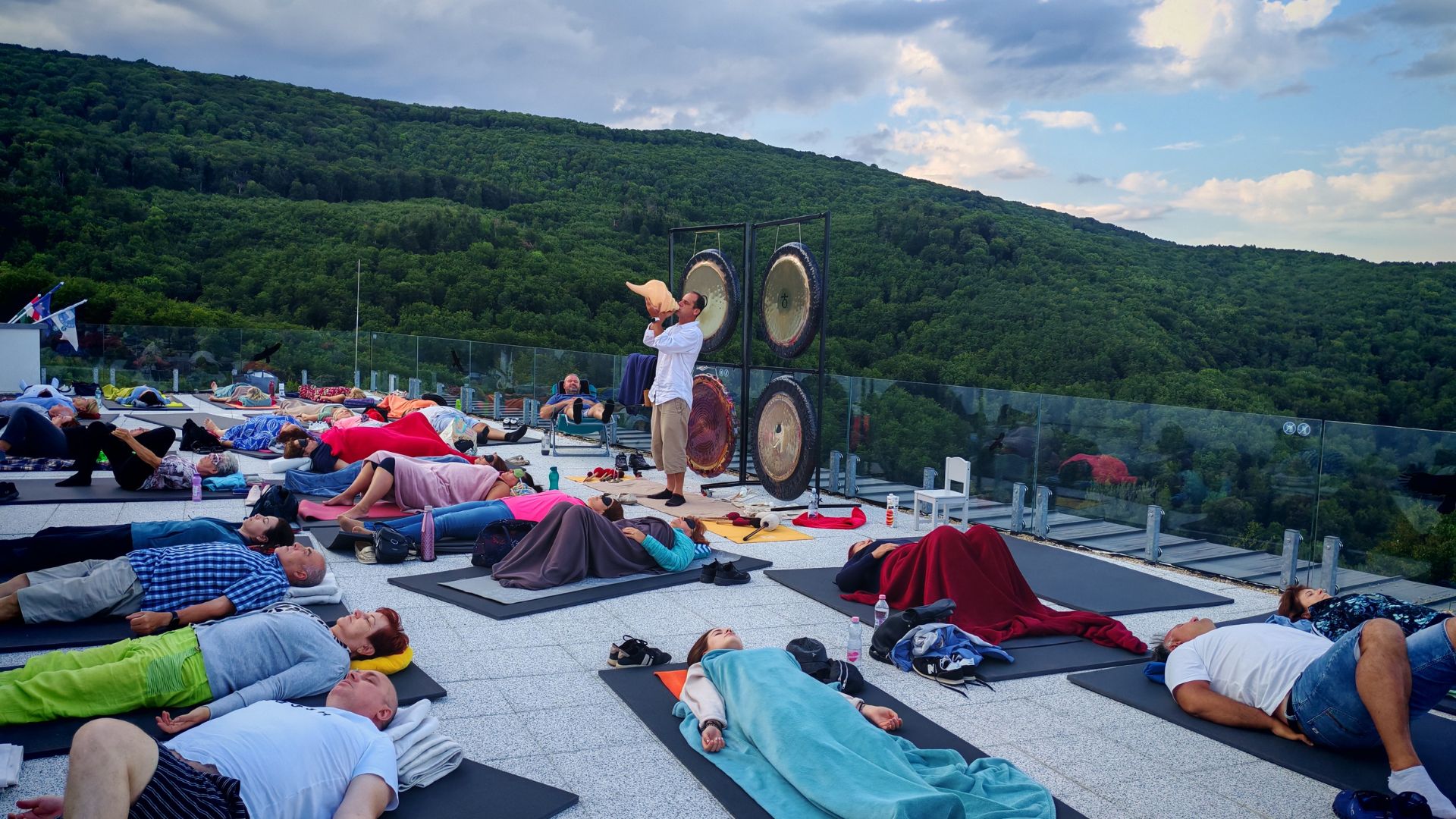 Relaxációs programunkat - jó idő esetén - a Bükki Csillagda teraszán tartjuk. Innen lélegzetelállító panoráma nyílik a Bükk lankáira és erdőségeire, inspiráló természeti látványt nyújtva a relaxációhoz. A tágas terasz, a Bükk illatai, a simogató szellő és a szabadtéri környezet mind fokozzák a természettel való kapcsolatot, a tibeti hangtálak és gongok rezgései pedig mély relaxációt idéznek elő, segítik a meditatív állapot fokozását, és harmonizálják a test energiáit.